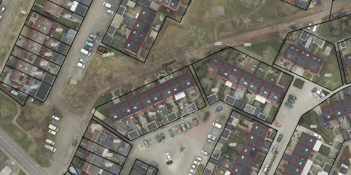 Het perceel waarop Rijsaert 22 staat heeft een oppervlakte van 1409 m². Dit is een zeer groot perceel. De perceeloppervlakte wordt geregistreerd door het Kadaster. Gedetailleerde informatie over de maten van dit perceel kunt u vinden in het rapport Kadastrale kaart met maatvoering van Rijsaert 22.