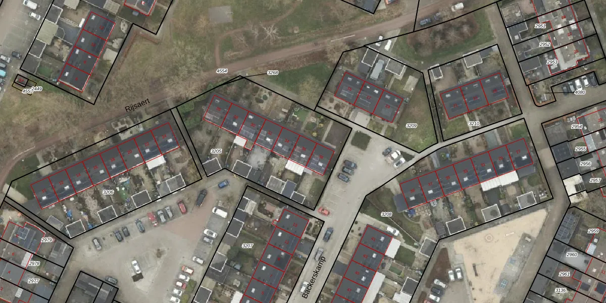 Het perceel waarop Rijsaert 36 staat heeft een oppervlakte van 1472 m². Dit is een zeer groot perceel. De perceeloppervlakte wordt geregistreerd door het Kadaster. Gedetailleerde informatie over de maten van dit perceel kunt u vinden in het rapport Kadastrale kaart met maatvoering van Rijsaert 36.