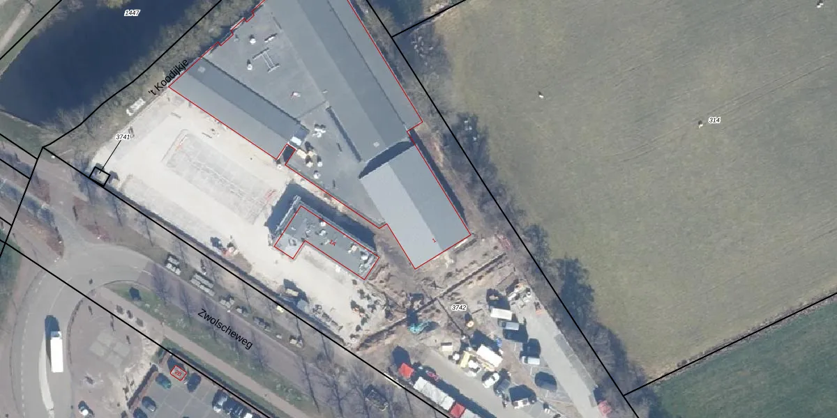 Het perceel waarop Zwolscheweg 1 staat heeft een oppervlakte van 7678 m². Dit is een zeer groot perceel. De perceeloppervlakte wordt geregistreerd door het Kadaster. Gedetailleerde informatie over de maten van dit perceel kunt u vinden in het rapport Kadastrale kaart met maatvoering van Zwolscheweg 1.