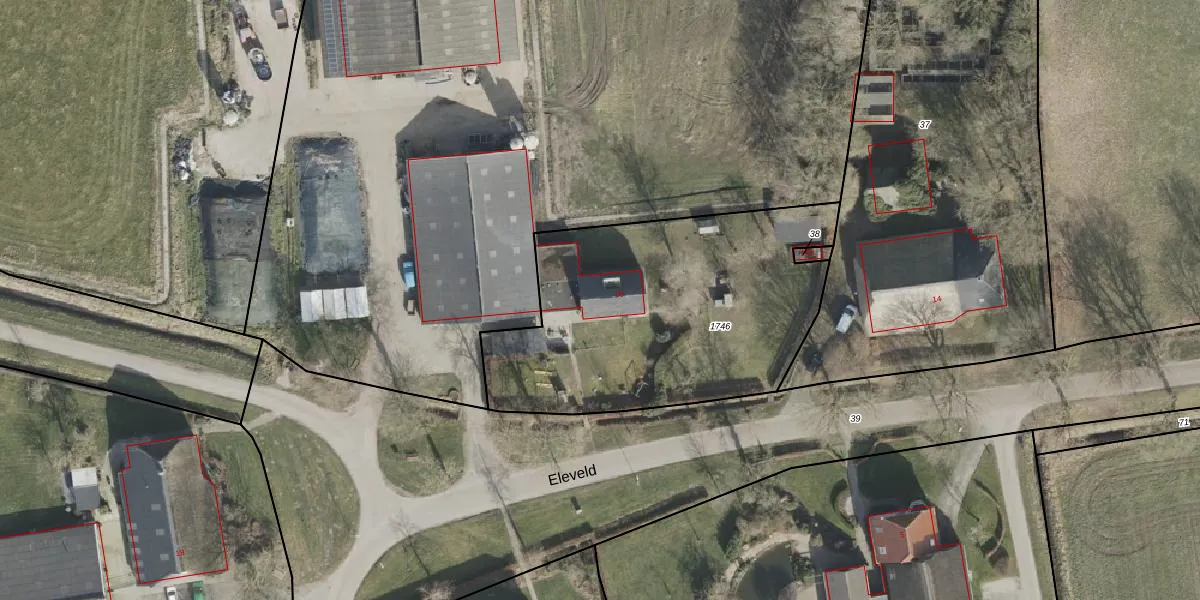 Het perceel waarop Eleveld 16 staat heeft een oppervlakte van 1545 m². Dit is een zeer groot perceel. De perceeloppervlakte wordt geregistreerd door het Kadaster. Gedetailleerde informatie over de maten van dit perceel kunt u vinden in het rapport Kadastrale kaart met maatvoering van Eleveld 16.