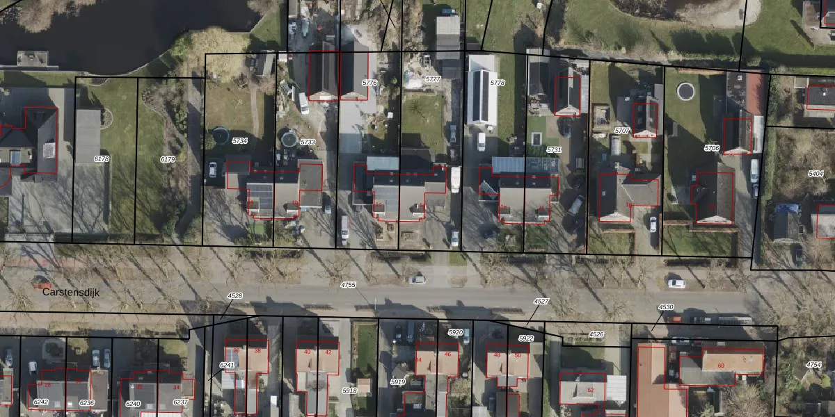 Het perceel waarop Carstensdijk 1-d staat heeft een oppervlakte van 723 m². Dit is een groot perceel. De perceeloppervlakte wordt geregistreerd door het Kadaster. Gedetailleerde informatie over de maten van dit perceel kunt u vinden in het rapport Kadastrale kaart met maatvoering van Carstensdijk 1-d.