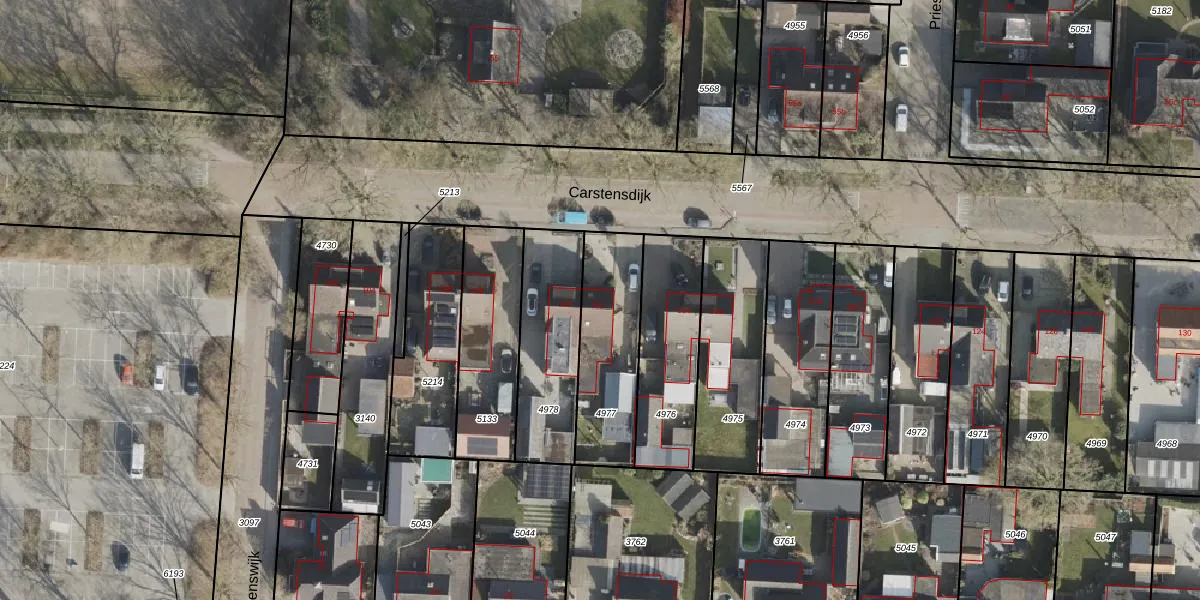 Carstensdijk 112 is gelegen op kadastraal perceel HGV00M4977. Deze kadastrale aanduiding is uniek en wordt gebruikt door het Kadaster om eigendomsrechten en andere zakelijke rechten vast te leggen. Het perceel maakt onderdeel uit van de kadastrale gemeente Hoogeveen.