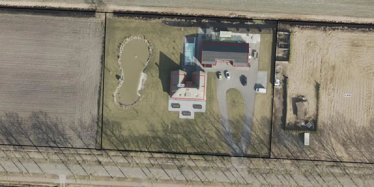 Het perceel waarop Carstensdijk 25 staat heeft een oppervlakte van 6700 m². Dit is een zeer groot perceel. De perceeloppervlakte wordt geregistreerd door het Kadaster. Gedetailleerde informatie over de maten van dit perceel kunt u vinden in het rapport Kadastrale kaart met maatvoering van Carstensdijk 25.