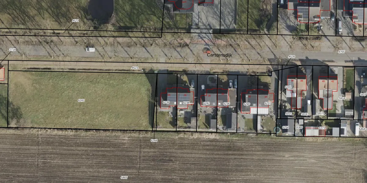 Carstensdijk 26 is gelegen op kadastraal perceel HGV00M6238. Deze kadastrale aanduiding is uniek en wordt gebruikt door het Kadaster om eigendomsrechten en andere zakelijke rechten vast te leggen. Het perceel maakt onderdeel uit van de kadastrale gemeente Hoogeveen.