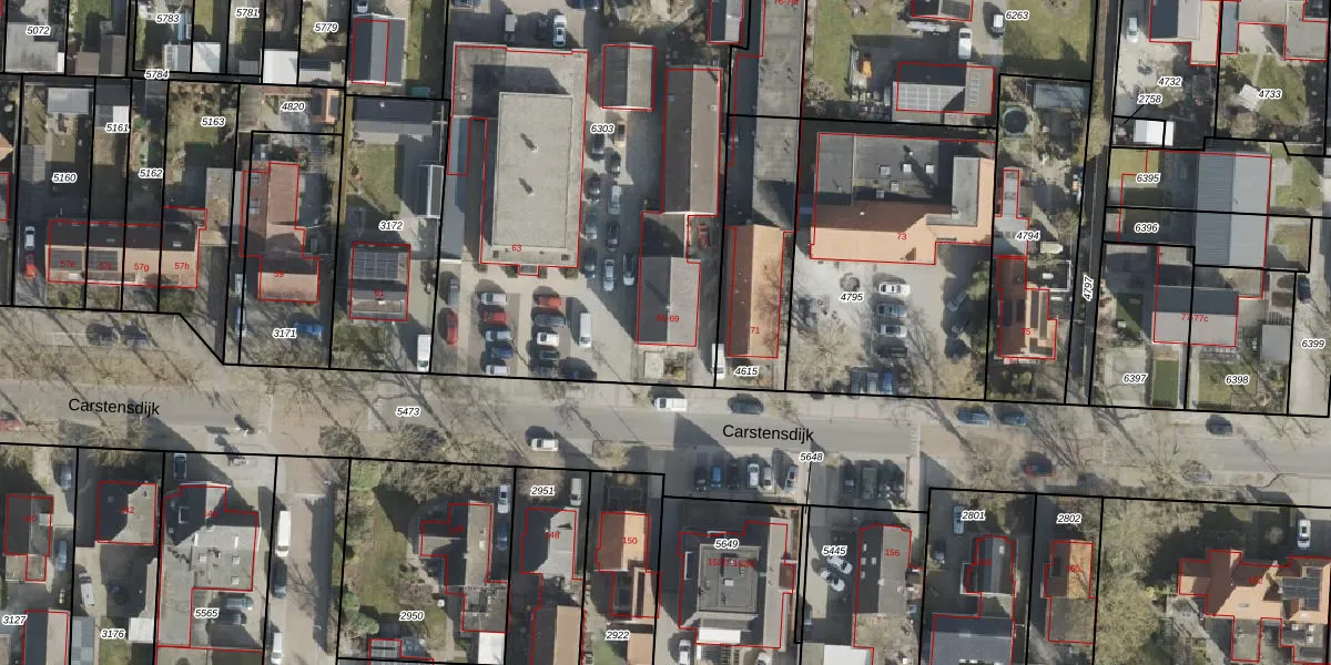Het perceel waarop Carstensdijk 65 staat heeft een oppervlakte van 3249 m². Dit is een zeer groot perceel. De perceeloppervlakte wordt geregistreerd door het Kadaster. Gedetailleerde informatie over de maten van dit perceel kunt u vinden in het rapport Kadastrale kaart met maatvoering van Carstensdijk 65.