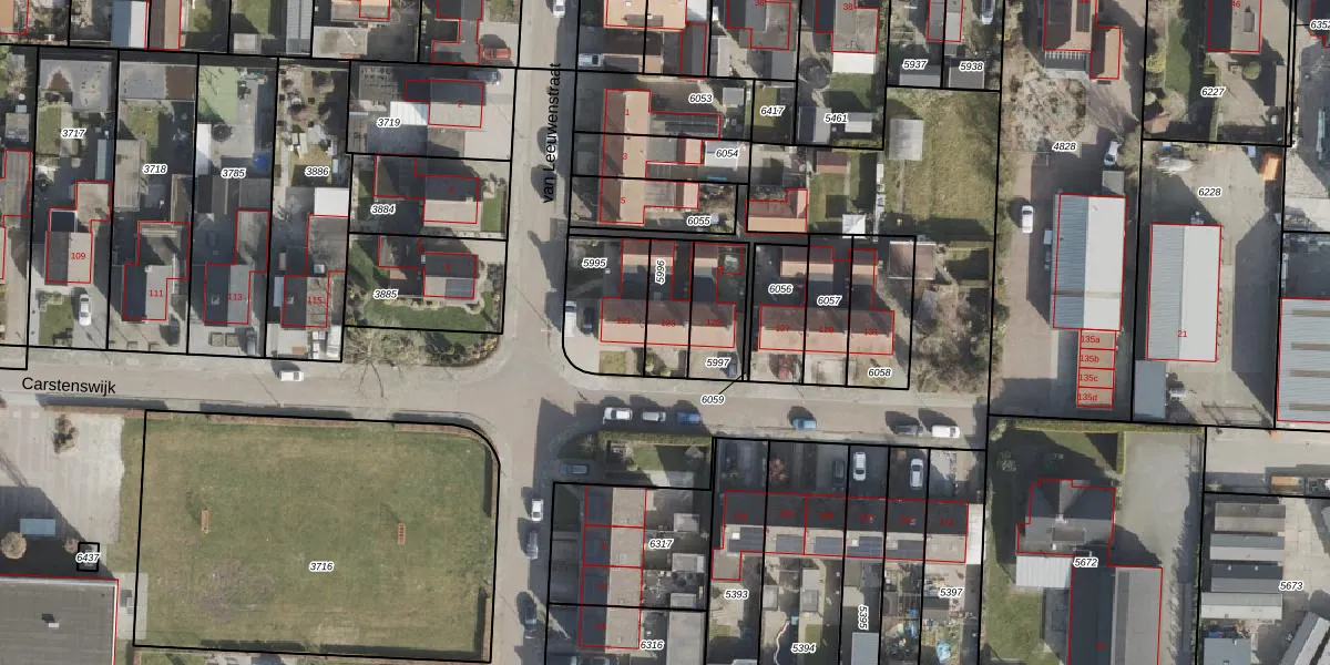 Het perceel waarop Carstenswijk 123 staat heeft een oppervlakte van 135 m². Dit is een middelgroot perceel. De perceeloppervlakte wordt geregistreerd door het Kadaster. Gedetailleerde informatie over de maten van dit perceel kunt u vinden in het rapport Kadastrale kaart met maatvoering van Carstenswijk 123.