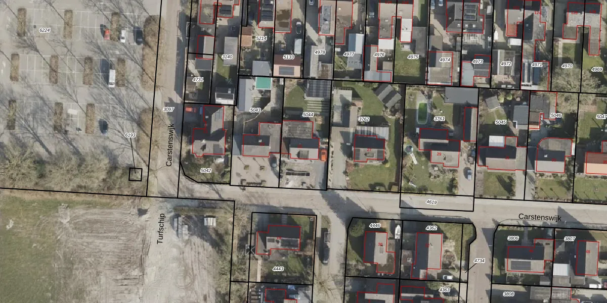 Carstenswijk 25 is gelegen op kadastraal perceel HGV00M5044. Deze kadastrale aanduiding is uniek en wordt gebruikt door het Kadaster om eigendomsrechten en andere zakelijke rechten vast te leggen. Het perceel maakt onderdeel uit van de kadastrale gemeente Hoogeveen.