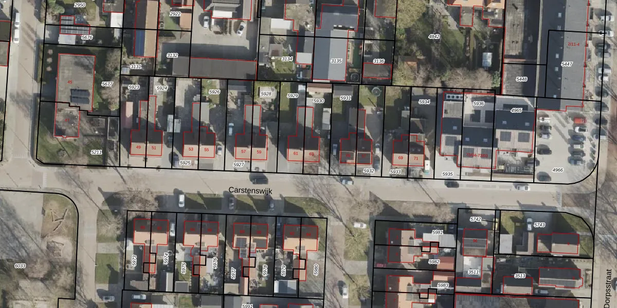 Het perceel waarop Carstenswijk 63 staat heeft een oppervlakte van 259 m². Dit is een middelgroot perceel. De perceeloppervlakte wordt geregistreerd door het Kadaster. Gedetailleerde informatie over de maten van dit perceel kunt u vinden in het rapport Kadastrale kaart met maatvoering van Carstenswijk 63.