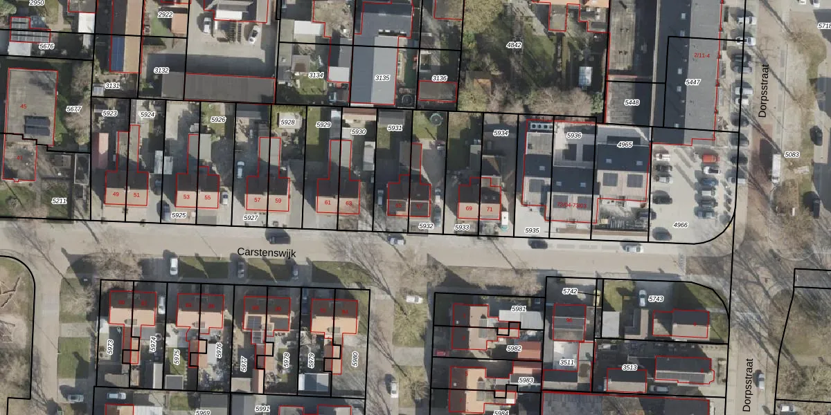 Carstenswijk 67 is gelegen op kadastraal perceel HGV00M5932. Deze kadastrale aanduiding is uniek en wordt gebruikt door het Kadaster om eigendomsrechten en andere zakelijke rechten vast te leggen. Het perceel maakt onderdeel uit van de kadastrale gemeente Hoogeveen.