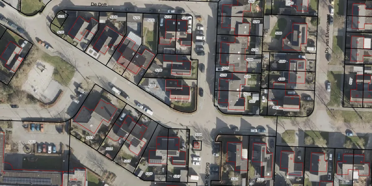Het perceel waarop De Doft 8 staat heeft een oppervlakte van 414 m². Dit is een groot perceel. De perceeloppervlakte wordt geregistreerd door het Kadaster. Gedetailleerde informatie over de maten van dit perceel kunt u vinden in het rapport Kadastrale kaart met maatvoering van De Doft 8.