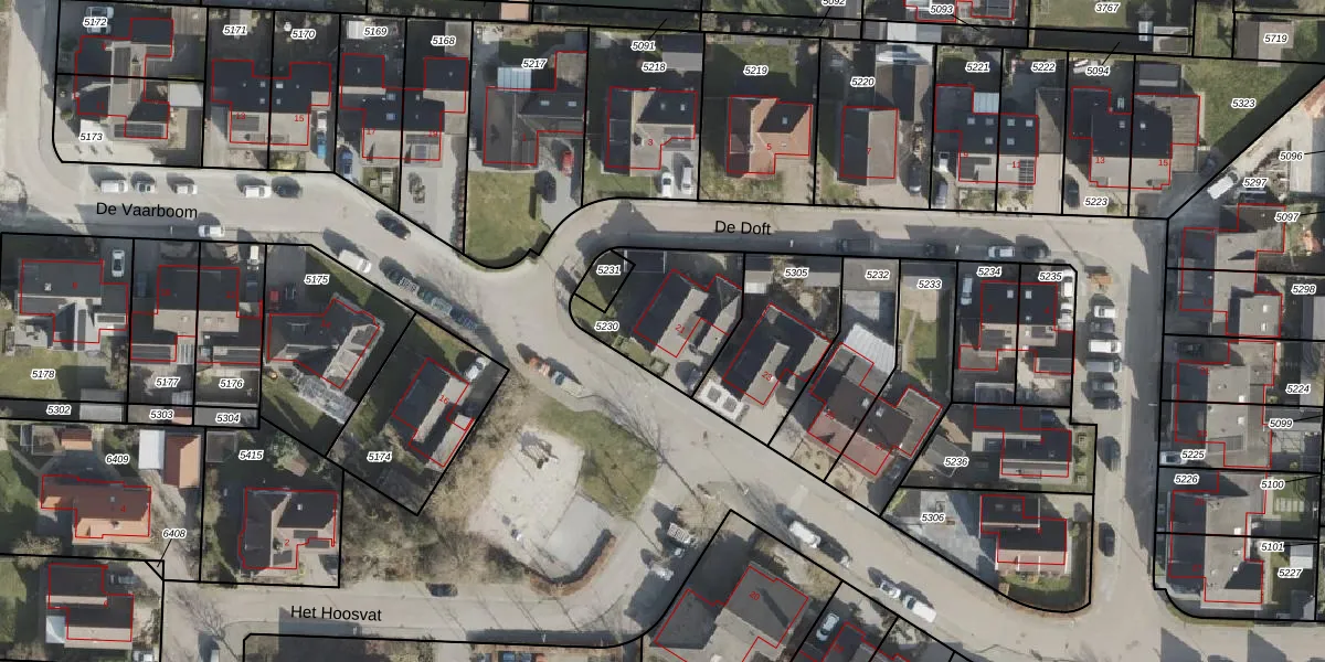 Gebruik de zoekbalk of klik op een perceel voor informatie over de adressen binnen dit perceel.