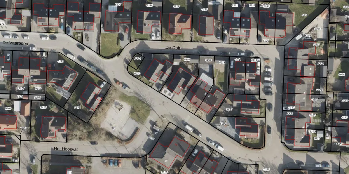 Het perceel waarop De Vaarboom 23 staat heeft een oppervlakte van 395 m². Dit is een groot perceel. De perceeloppervlakte wordt geregistreerd door het Kadaster. Gedetailleerde informatie over de maten van dit perceel kunt u vinden in het rapport Kadastrale kaart met maatvoering van De Vaarboom 23.