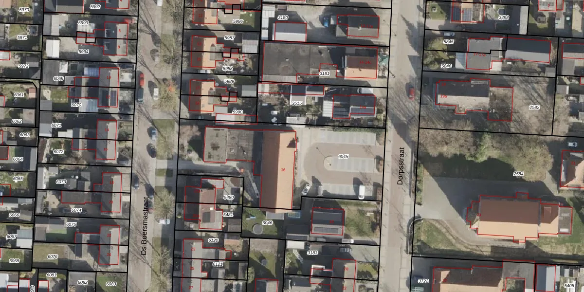 Het perceel waarop Dorpsstraat 16 staat heeft een oppervlakte van 1715 m². Dit is een zeer groot perceel. De perceeloppervlakte wordt geregistreerd door het Kadaster. Gedetailleerde informatie over de maten van dit perceel kunt u vinden in het rapport Kadastrale kaart met maatvoering van Dorpsstraat 16.