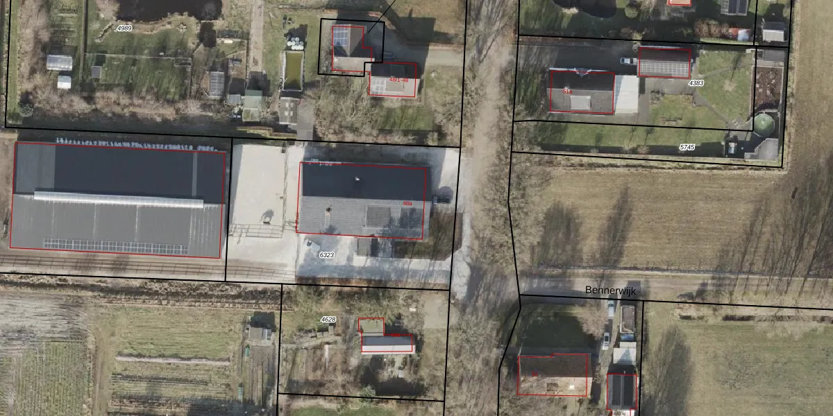 Het perceel waarop Dorpsstraat 48-a staat heeft een oppervlakte van 1859 m². Dit is een zeer groot perceel. De perceeloppervlakte wordt geregistreerd door het Kadaster. Gedetailleerde informatie over de maten van dit perceel kunt u vinden in het rapport Kadastrale kaart met maatvoering van Dorpsstraat 48-a.