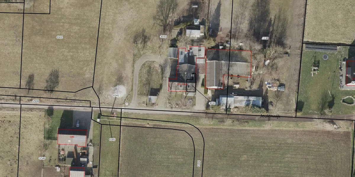 Het perceel waarop Jeulenwijk 101 staat heeft een oppervlakte van 5980 m². Dit is een zeer groot perceel. De perceeloppervlakte wordt geregistreerd door het Kadaster. Gedetailleerde informatie over de maten van dit perceel kunt u vinden in het rapport Kadastrale kaart met maatvoering van Jeulenwijk 101.