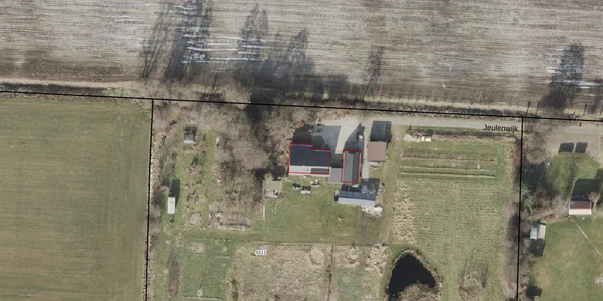 Het perceel waarop Jeulenwijk 4 staat heeft een oppervlakte van 9291 m². Dit is een zeer groot perceel. De perceeloppervlakte wordt geregistreerd door het Kadaster. Gedetailleerde informatie over de maten van dit perceel kunt u vinden in het rapport Kadastrale kaart met maatvoering van Jeulenwijk 4.