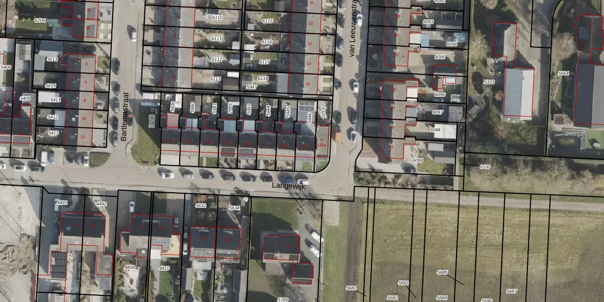 Langewijk 135 is gelegen op kadastraal perceel HGV00M5946. Deze kadastrale aanduiding is uniek en wordt gebruikt door het Kadaster om eigendomsrechten en andere zakelijke rechten vast te leggen. Het perceel maakt onderdeel uit van de kadastrale gemeente Hoogeveen.