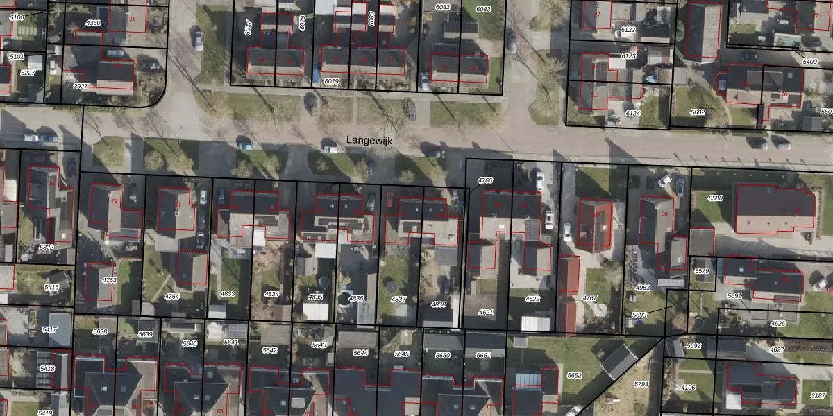 Het perceel waarop Langewijk 90 staat heeft een oppervlakte van 341 m². Dit is een groot perceel. De perceeloppervlakte wordt geregistreerd door het Kadaster. Gedetailleerde informatie over de maten van dit perceel kunt u vinden in het rapport Kadastrale kaart met maatvoering van Langewijk 90.