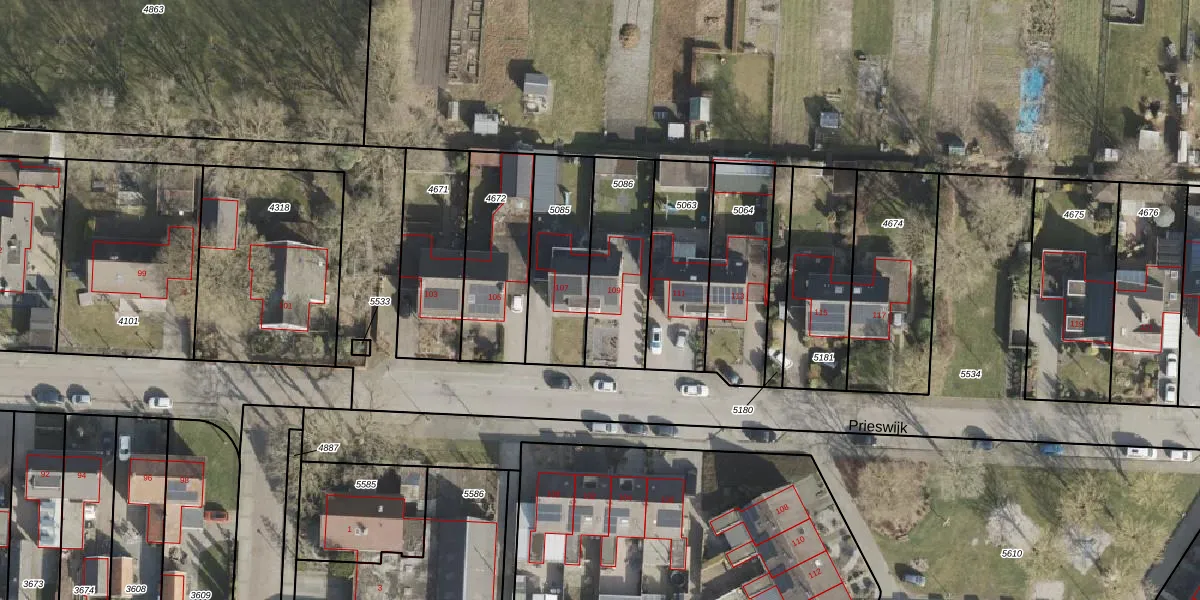 Het perceel waarop Prieswijk 109 staat heeft een oppervlakte van 348 m². Dit is een groot perceel. De perceeloppervlakte wordt geregistreerd door het Kadaster. Gedetailleerde informatie over de maten van dit perceel kunt u vinden in het rapport Kadastrale kaart met maatvoering van Prieswijk 109.