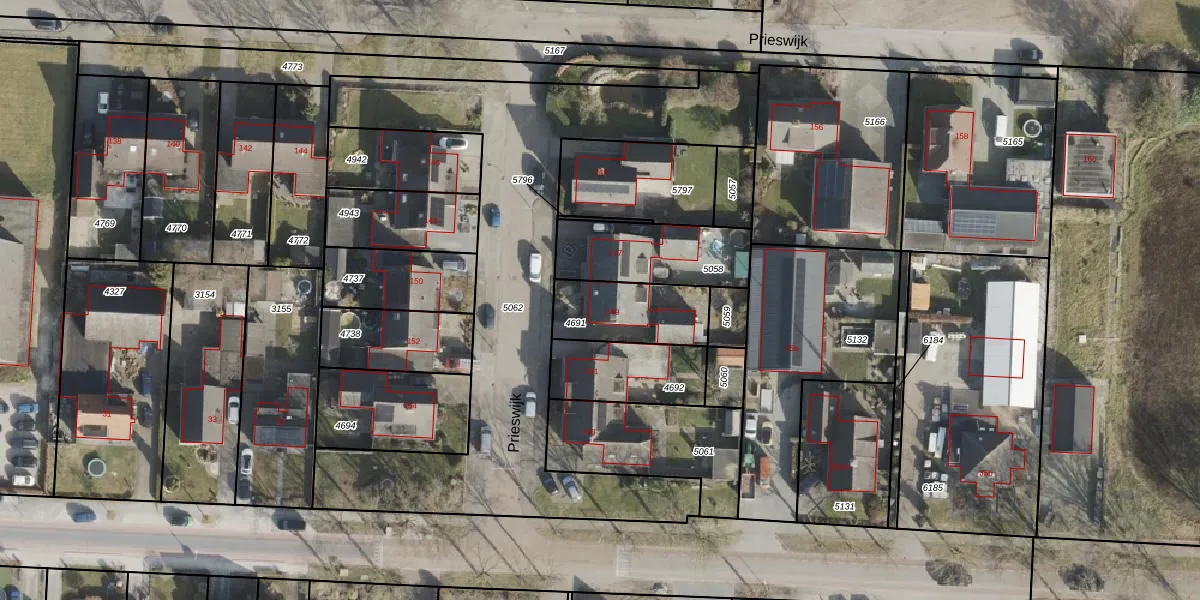 Het perceel waarop Prieswijk 149 staat heeft een oppervlakte van 259 m². Dit is een middelgroot perceel. De perceeloppervlakte wordt geregistreerd door het Kadaster. Gedetailleerde informatie over de maten van dit perceel kunt u vinden in het rapport Kadastrale kaart met maatvoering van Prieswijk 149.