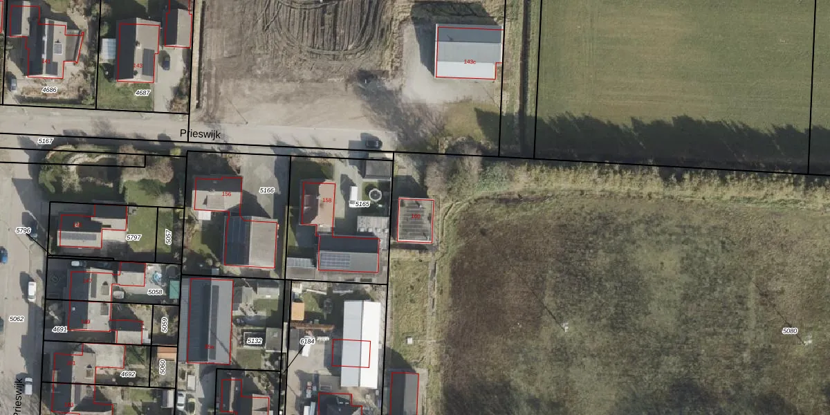 Het perceel waarop Prieswijk 160 staat heeft een oppervlakte van 1,6 ha. Dit is een zeer groot perceel. De perceeloppervlakte wordt geregistreerd door het Kadaster. Gedetailleerde informatie over de maten van dit perceel kunt u vinden in het rapport Kadastrale kaart met maatvoering van Prieswijk 160.
