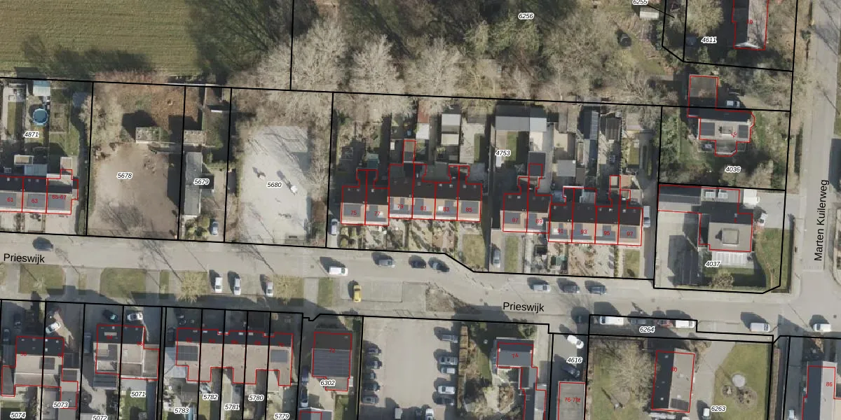 Het perceel waarop Prieswijk 81 staat heeft een oppervlakte van 3104 m². Dit is een zeer groot perceel. De perceeloppervlakte wordt geregistreerd door het Kadaster. Gedetailleerde informatie over de maten van dit perceel kunt u vinden in het rapport Kadastrale kaart met maatvoering van Prieswijk 81.