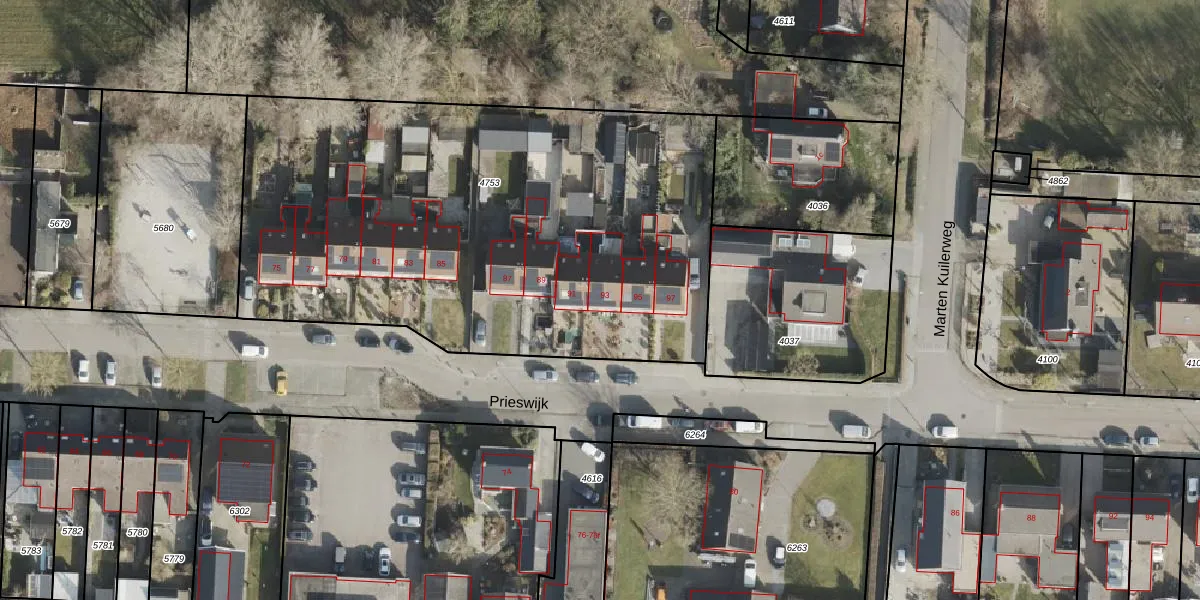 Prieswijk 93 is gelegen op kadastraal perceel HGV00M4753. Deze kadastrale aanduiding is uniek en wordt gebruikt door het Kadaster om eigendomsrechten en andere zakelijke rechten vast te leggen. Het perceel maakt onderdeel uit van de kadastrale gemeente Hoogeveen.
