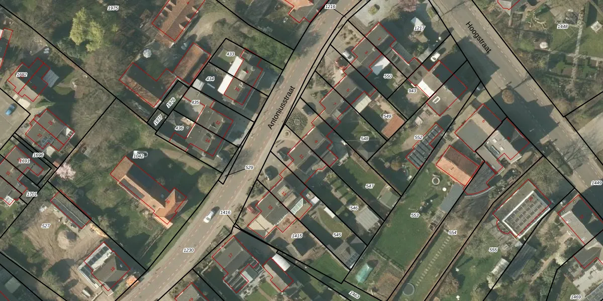 Het perceel waarop Antoniusstraat 11 staat heeft een oppervlakte van 450 m². Dit is een groot perceel. De perceeloppervlakte wordt geregistreerd door het Kadaster. Gedetailleerde informatie over de maten van dit perceel kunt u vinden in het rapport Kadastrale kaart met maatvoering van Antoniusstraat 11.