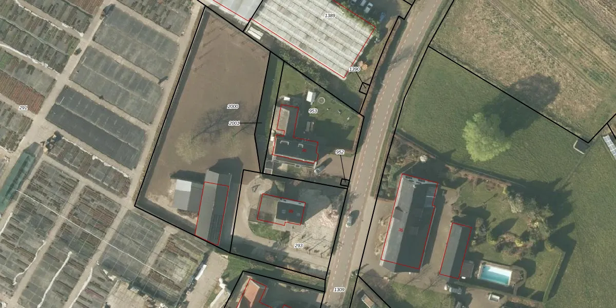 Gebruik de zoekbalk of klik op een perceel voor informatie over de adressen binnen dit perceel.