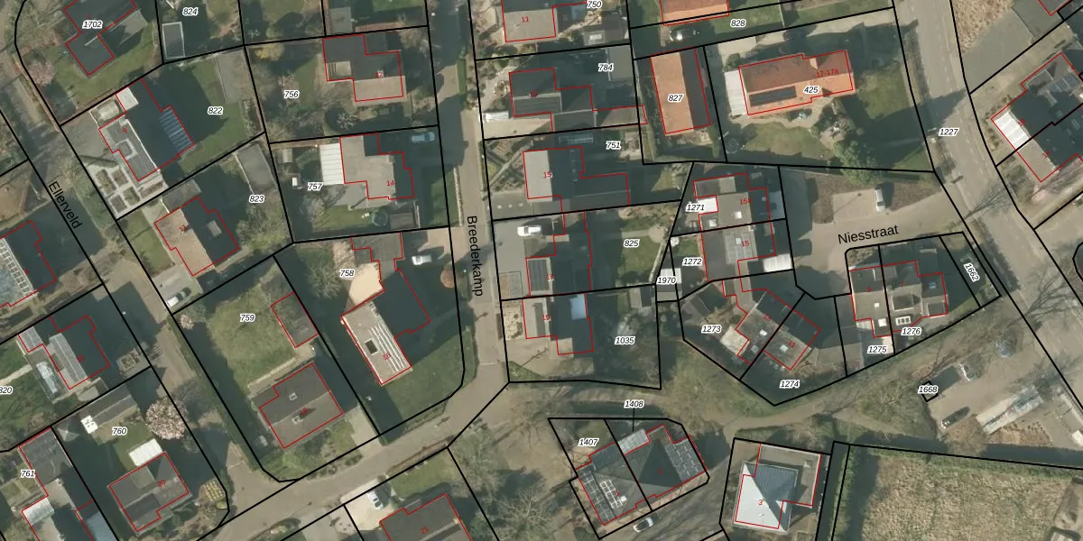 Gebruik de zoekbalk of klik op een perceel voor informatie over de adressen binnen dit perceel.