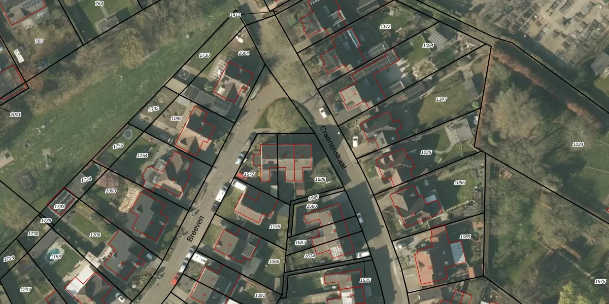 Het perceel waarop Craenenstraat 4 staat heeft een oppervlakte van 363 m². Dit is een groot perceel. De perceeloppervlakte wordt geregistreerd door het Kadaster. Gedetailleerde informatie over de maten van dit perceel kunt u vinden in het rapport Kadastrale kaart met maatvoering van Craenenstraat 4.