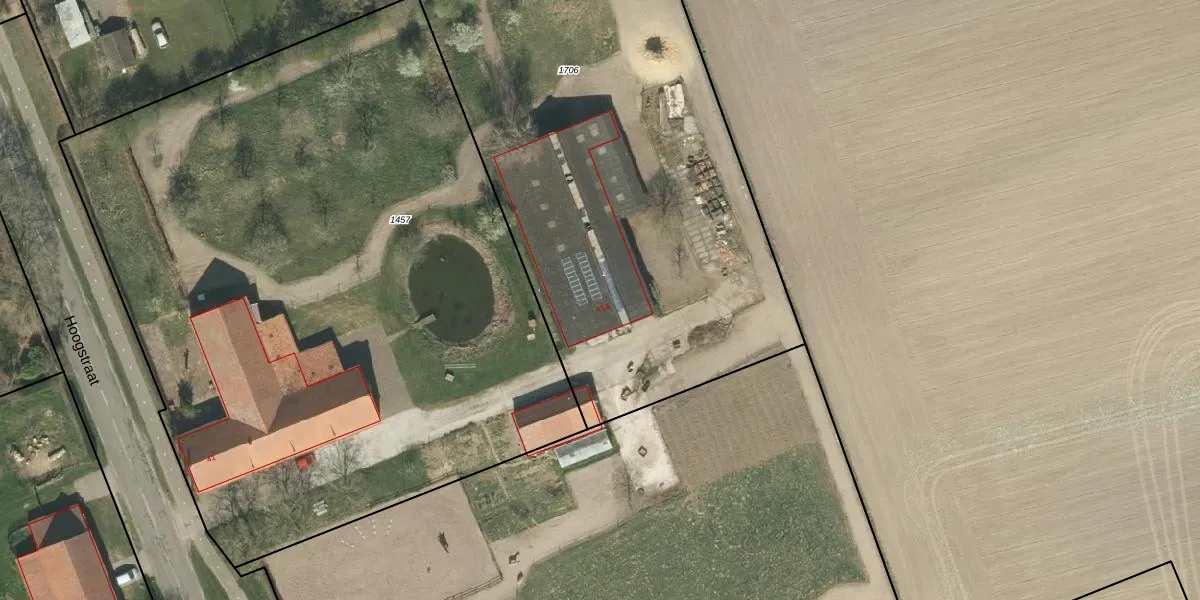 Het perceel waarop Hoogstraat 41-a staat heeft een oppervlakte van 3145 m². Dit is een zeer groot perceel. De perceeloppervlakte wordt geregistreerd door het Kadaster. Gedetailleerde informatie over de maten van dit perceel kunt u vinden in het rapport Kadastrale kaart met maatvoering van Hoogstraat 41-a.