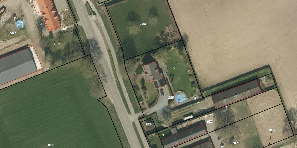 Hoogstraat 49 is gelegen op kadastraal perceel HSL00F1433. Deze kadastrale aanduiding is uniek en wordt gebruikt door het Kadaster om eigendomsrechten en andere zakelijke rechten vast te leggen. Het perceel maakt onderdeel uit van de kadastrale gemeente Hunsel.
