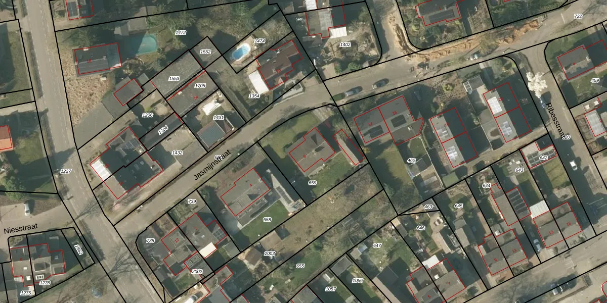 Het perceel waarop Jasmijnstraat 6 staat heeft een oppervlakte van 690 m². Dit is een groot perceel. De perceeloppervlakte wordt geregistreerd door het Kadaster. Gedetailleerde informatie over de maten van dit perceel kunt u vinden in het rapport Kadastrale kaart met maatvoering van Jasmijnstraat 6.