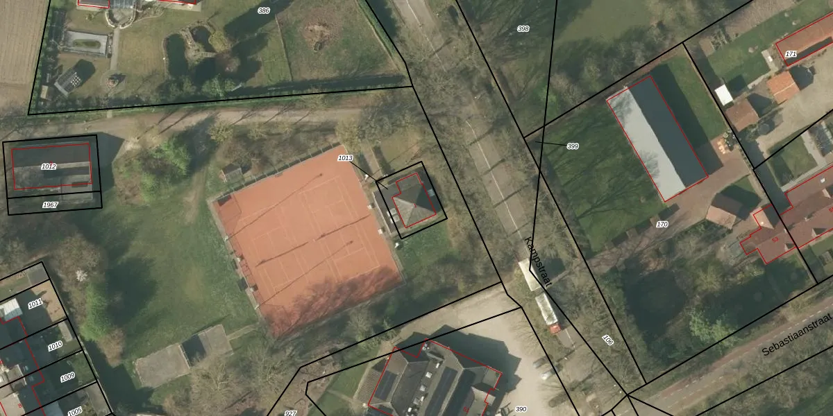Kampstraat 1 is gelegen op kadastraal perceel HSL00F1013. Deze kadastrale aanduiding is uniek en wordt gebruikt door het Kadaster om eigendomsrechten en andere zakelijke rechten vast te leggen. Het perceel maakt onderdeel uit van de kadastrale gemeente Hunsel.