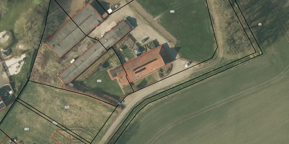 Het adres is gelegen op perceel 221 in de sectie H en de kadastrale gemeente Hunsel. De kadastrale aanduiding is aldus HSL00-H-221. Het perceel is kleiner dan gemiddeld in Hunsel. Het perceel is 7026 m² groot, terwijl het gemiddelde ligt op 7206,64 m². De grootste perceeloppervlakte in de kadastrale gemeente is 22,0 ha. De kleinste oppervlakte bedraagt 0 m². Dit is het enige adres dat aanwezig is op het perceel. In de Basisregistratie Kadaster (BRK) werden de grenzen van het perceel geregistreerd op 06-01-2009.