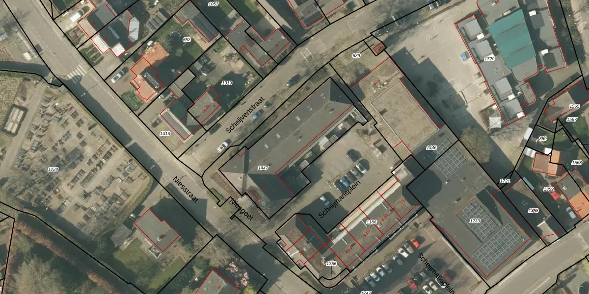 Het perceel waarop Niesgoet 8 staat heeft een oppervlakte van 972 m². Dit is een groot perceel. De perceeloppervlakte wordt geregistreerd door het Kadaster. Gedetailleerde informatie over de maten van dit perceel kunt u vinden in het rapport Kadastrale kaart met maatvoering van Niesgoet 8.