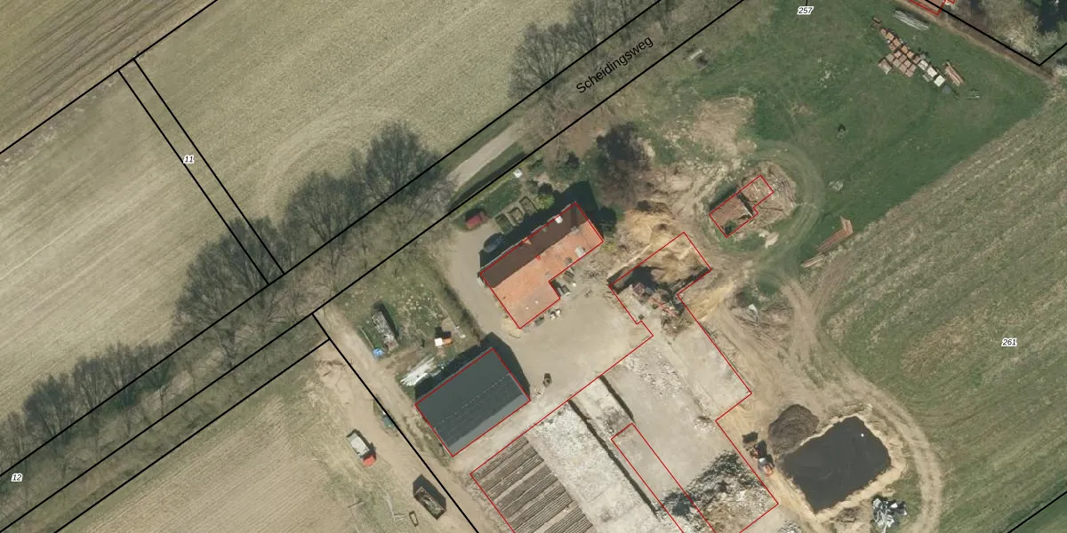 Scheidingsweg 9 is gelegen op kadastraal perceel HSL00H261. Deze kadastrale aanduiding is uniek en wordt gebruikt door het Kadaster om eigendomsrechten en andere zakelijke rechten vast te leggen. Het perceel maakt onderdeel uit van de kadastrale gemeente Hunsel.