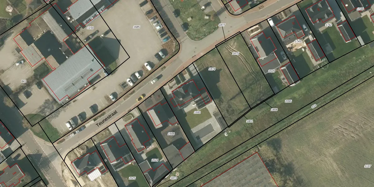 Het perceel waarop Teunestraat 10 staat heeft een oppervlakte van 852 m². Dit is een groot perceel. De perceeloppervlakte wordt geregistreerd door het Kadaster. Gedetailleerde informatie over de maten van dit perceel kunt u vinden in het rapport Kadastrale kaart met maatvoering van Teunestraat 10.