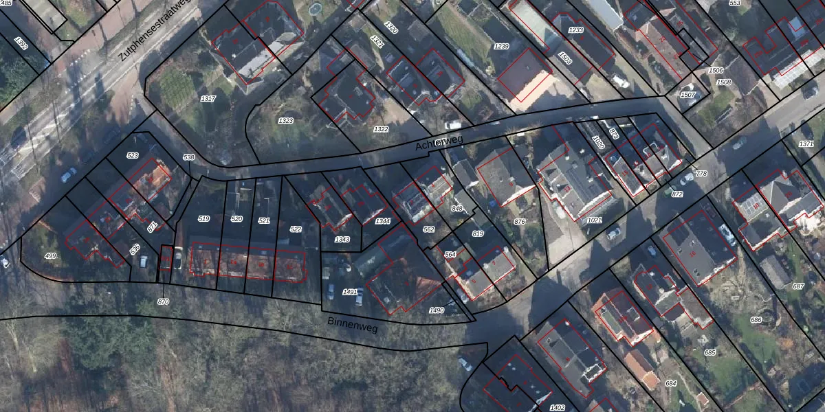 Achterweg 2 is gelegen op kadastraal perceel DRN00S562. Deze kadastrale aanduiding is uniek en wordt gebruikt door het Kadaster om eigendomsrechten en andere zakelijke rechten vast te leggen. Het perceel maakt onderdeel uit van de kadastrale gemeente Dieren.