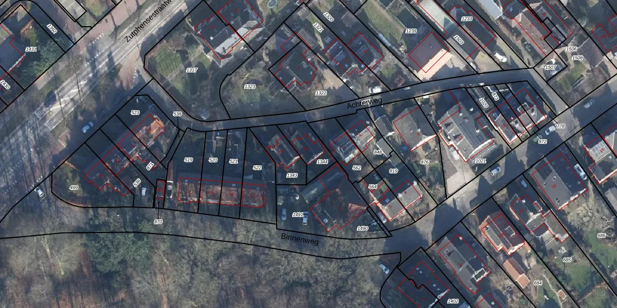Achterweg 2-b is gelegen op kadastraal perceel DRN00S1344. Deze kadastrale aanduiding is uniek en wordt gebruikt door het Kadaster om eigendomsrechten en andere zakelijke rechten vast te leggen. Het perceel maakt onderdeel uit van de kadastrale gemeente Dieren.