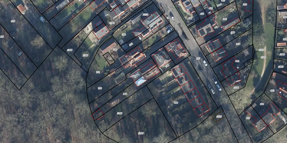 Het perceel waarop Buitensingel 18 staat heeft een oppervlakte van 355 m². Dit is een groot perceel. De perceeloppervlakte wordt geregistreerd door het Kadaster. Gedetailleerde informatie over de maten van dit perceel kunt u vinden in het rapport Kadastrale kaart met maatvoering van Buitensingel 18.