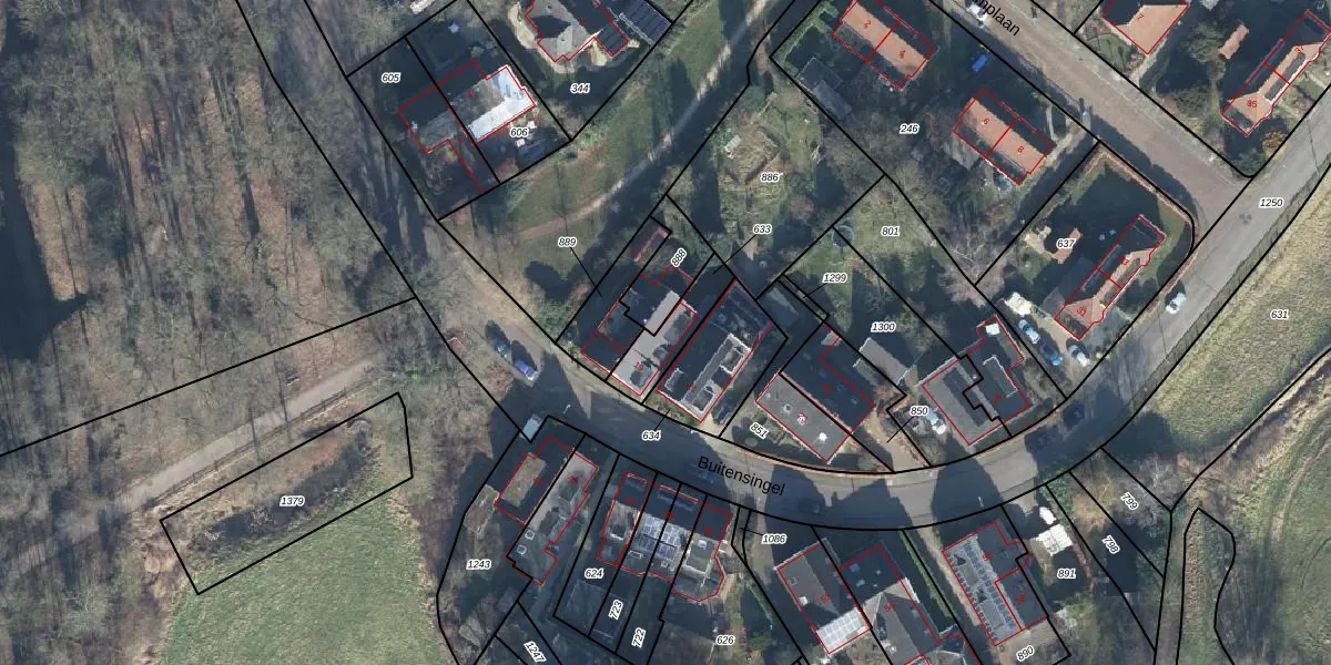 Buitensingel 19 is gelegen op kadastraal perceel DRN00S633. Deze kadastrale aanduiding is uniek en wordt gebruikt door het Kadaster om eigendomsrechten en andere zakelijke rechten vast te leggen. Het perceel maakt onderdeel uit van de kadastrale gemeente Dieren.