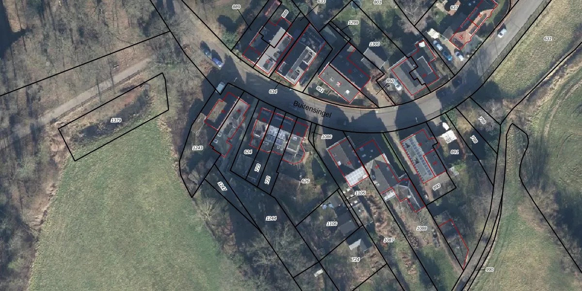 Buitensingel 50 is gelegen op kadastraal perceel DRN00S626. Deze kadastrale aanduiding is uniek en wordt gebruikt door het Kadaster om eigendomsrechten en andere zakelijke rechten vast te leggen. Het perceel maakt onderdeel uit van de kadastrale gemeente Dieren.