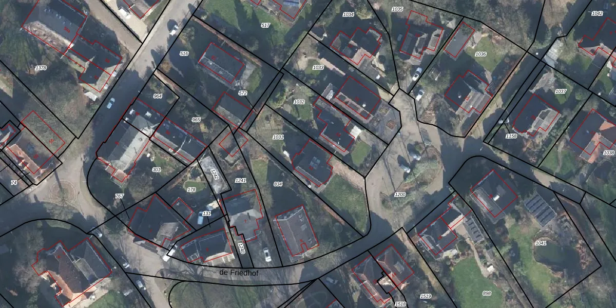 Het perceel waarop de Friedhof 11 staat heeft een oppervlakte van 640 m². Dit is een groot perceel. De perceeloppervlakte wordt geregistreerd door het Kadaster. Gedetailleerde informatie over de maten van dit perceel kunt u vinden in het rapport Kadastrale kaart met maatvoering van de Friedhof 11.
