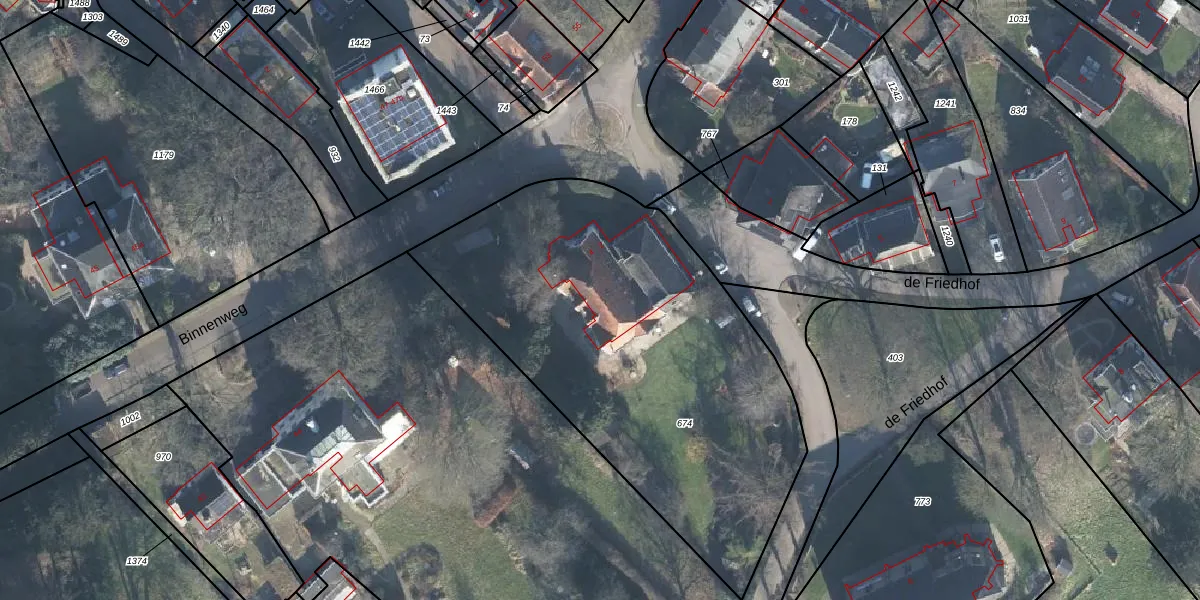 Het perceel waarop de Friedhof 4 staat heeft een oppervlakte van 2250 m². Dit is een zeer groot perceel. De perceeloppervlakte wordt geregistreerd door het Kadaster. Gedetailleerde informatie over de maten van dit perceel kunt u vinden in het rapport Kadastrale kaart met maatvoering van de Friedhof 4.