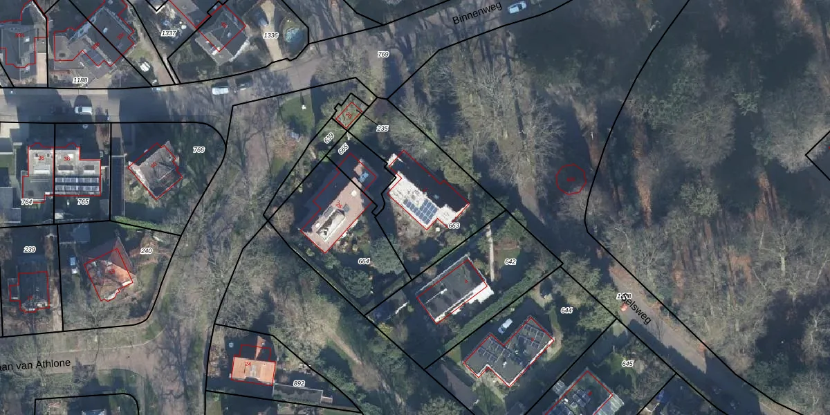 Gebruik de zoekbalk of klik op een perceel voor informatie over de adressen binnen dit perceel.