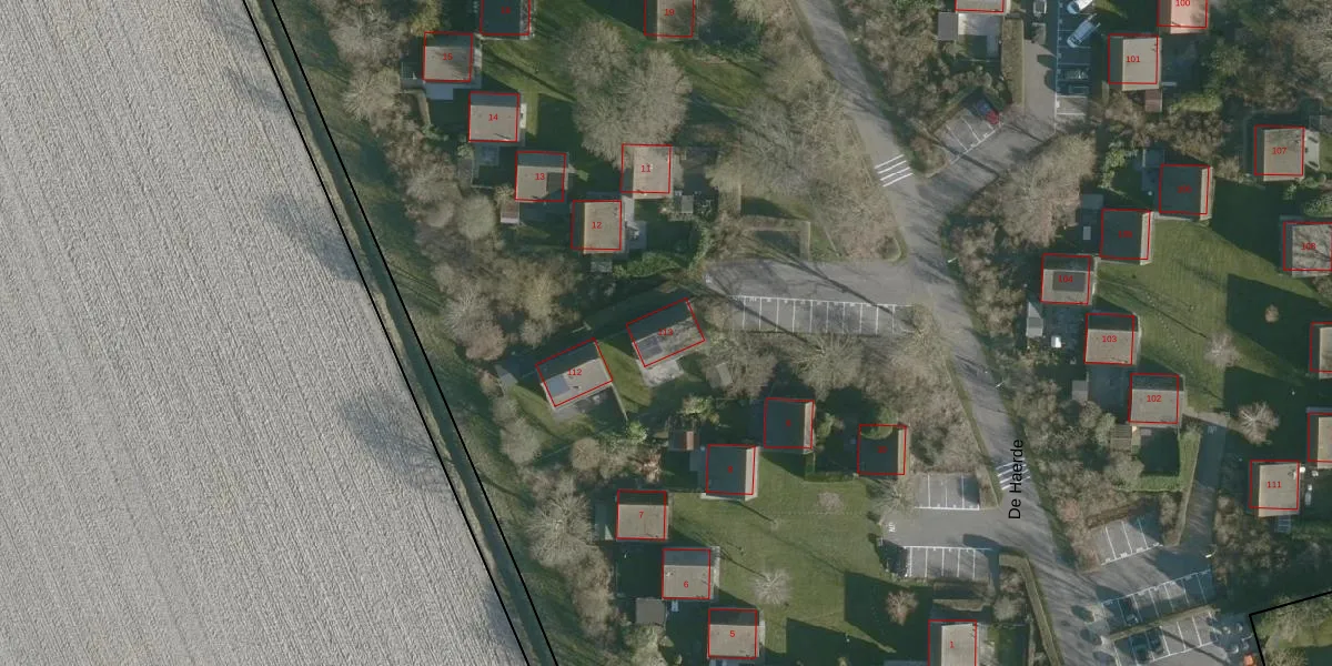 Het perceel waarop De Haerde 113 staat heeft een oppervlakte van 6,1 ha. Dit is een zeer groot perceel. De perceeloppervlakte wordt geregistreerd door het Kadaster. Gedetailleerde informatie over de maten van dit perceel kunt u vinden in het rapport Kadastrale kaart met maatvoering van De Haerde 113.
