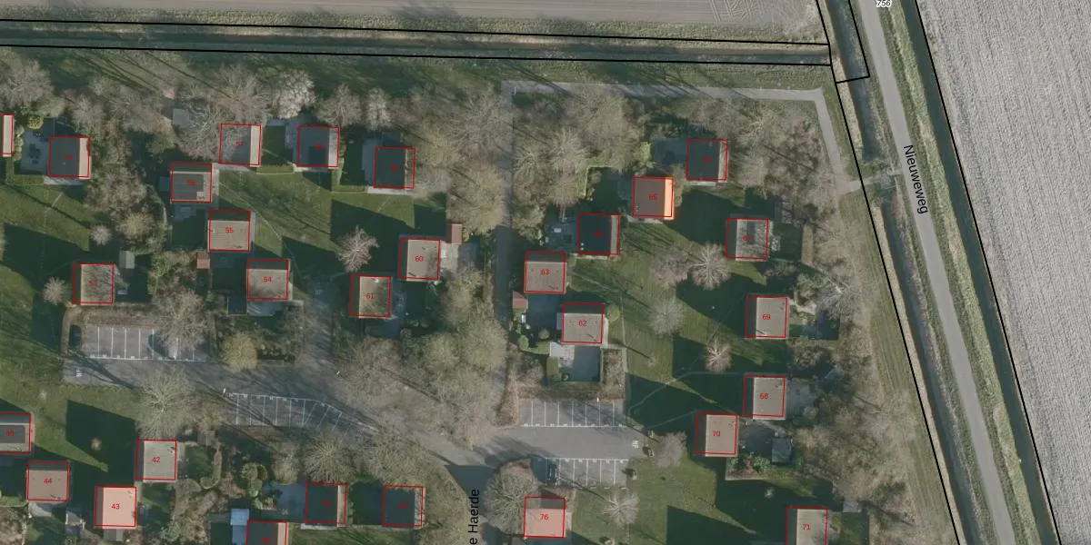 Het perceel waarop De Haerde 63 staat heeft een oppervlakte van 6,1 ha. Dit is een zeer groot perceel. De perceeloppervlakte wordt geregistreerd door het Kadaster. Gedetailleerde informatie over de maten van dit perceel kunt u vinden in het rapport Kadastrale kaart met maatvoering van De Haerde 63.