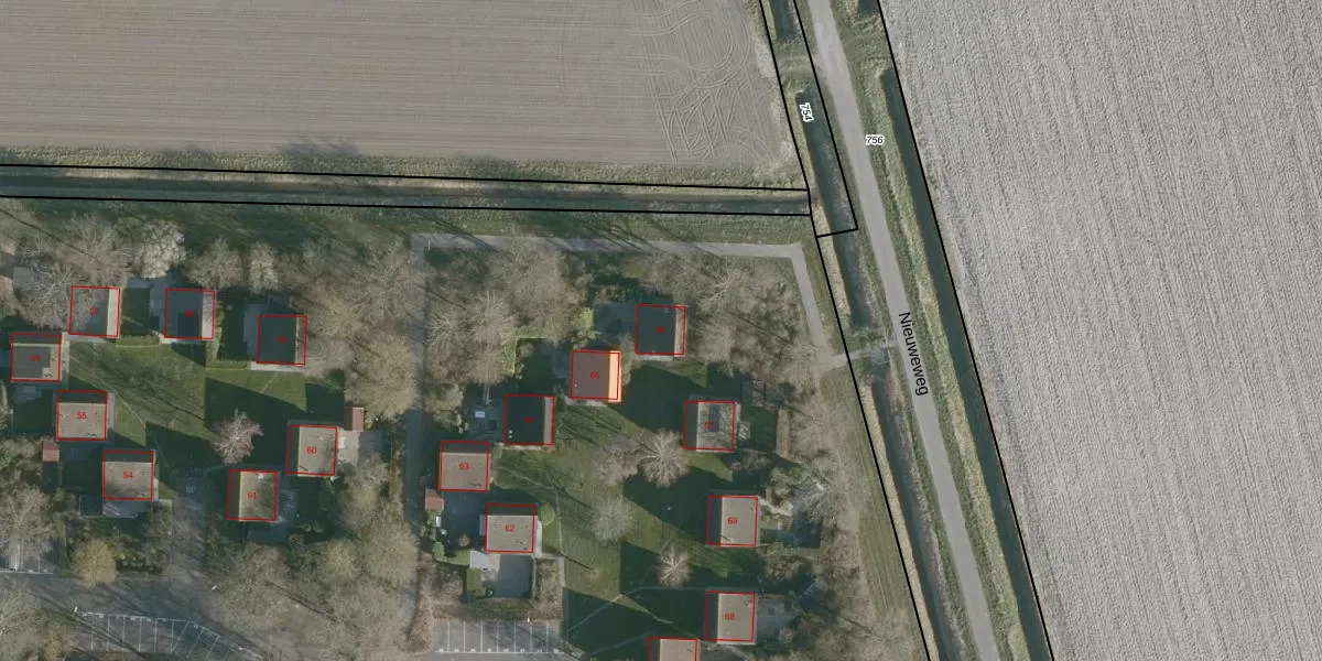 Het perceel waarop De Haerde 66 staat heeft een oppervlakte van 6,1 ha. Dit is een zeer groot perceel. De perceeloppervlakte wordt geregistreerd door het Kadaster. Gedetailleerde informatie over de maten van dit perceel kunt u vinden in het rapport Kadastrale kaart met maatvoering van De Haerde 66.